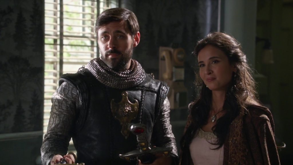 Liam Garrigan as King Arthur & Joana Metrass as Guinevere Once Upon a Time Season 5 Episode 4 The Broken Kingdom review picture image