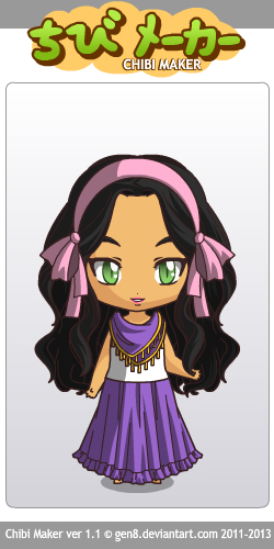 29Mar 2013 Fan-art Friday 3/29/13 by jess Today fan-art was composed by me using the chibi maker by gen8. I tried to make a chibi inspired by Disney’s Esmeralda. Disney Esmeralda inspired Chibi Posted in: Fan-art ⋅ Tagged: chini maker, disney, Esmeralda, gen8, Hunchback, notre Dame