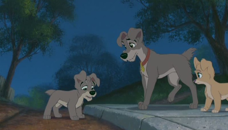 There is the same thing that The Little Mermaid 2 had, the parents lies about their past i.e the first movie and then the child does the same thing that parents did in the first movie. Scamp’s Adventure does feel different as the focus of Lady and the Tramp was both of them and Tramp wasn’t as annoying as Scamp is, which bring me to my next talking point.