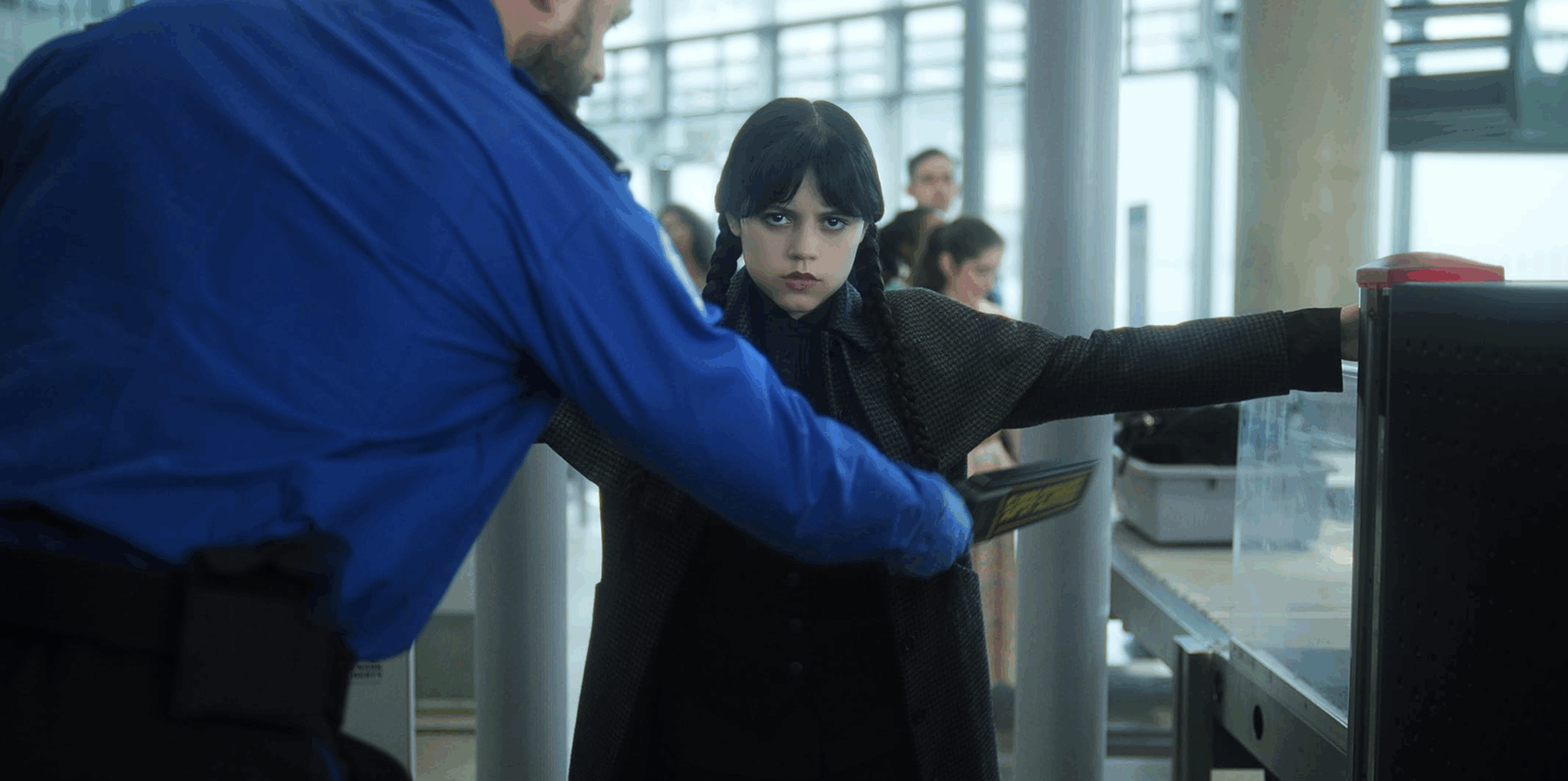 Much like Season 1, Season 2 opens with a preamble, a cold open if you will. Wednesday takes down a cold case serial killer with the use of her psychic powers that she has mostly master aside for some black goth tears. This opening does seem like a misdirect for the trailer but it’s fine and the TSA sun-screen gag was at least amusing, felt akin to Addams’ family humor.