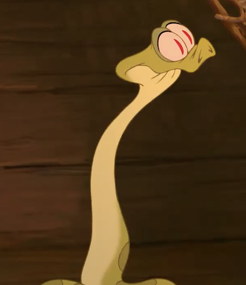 Sir Hiss flying in the balloon and then getting drunk is such a mood. I also enjoy Hiss’ interaction with the immature Prince John, The Phooey King of England and all his antics. Maybe an unpopular opinion but Hiss is better than Kaa.