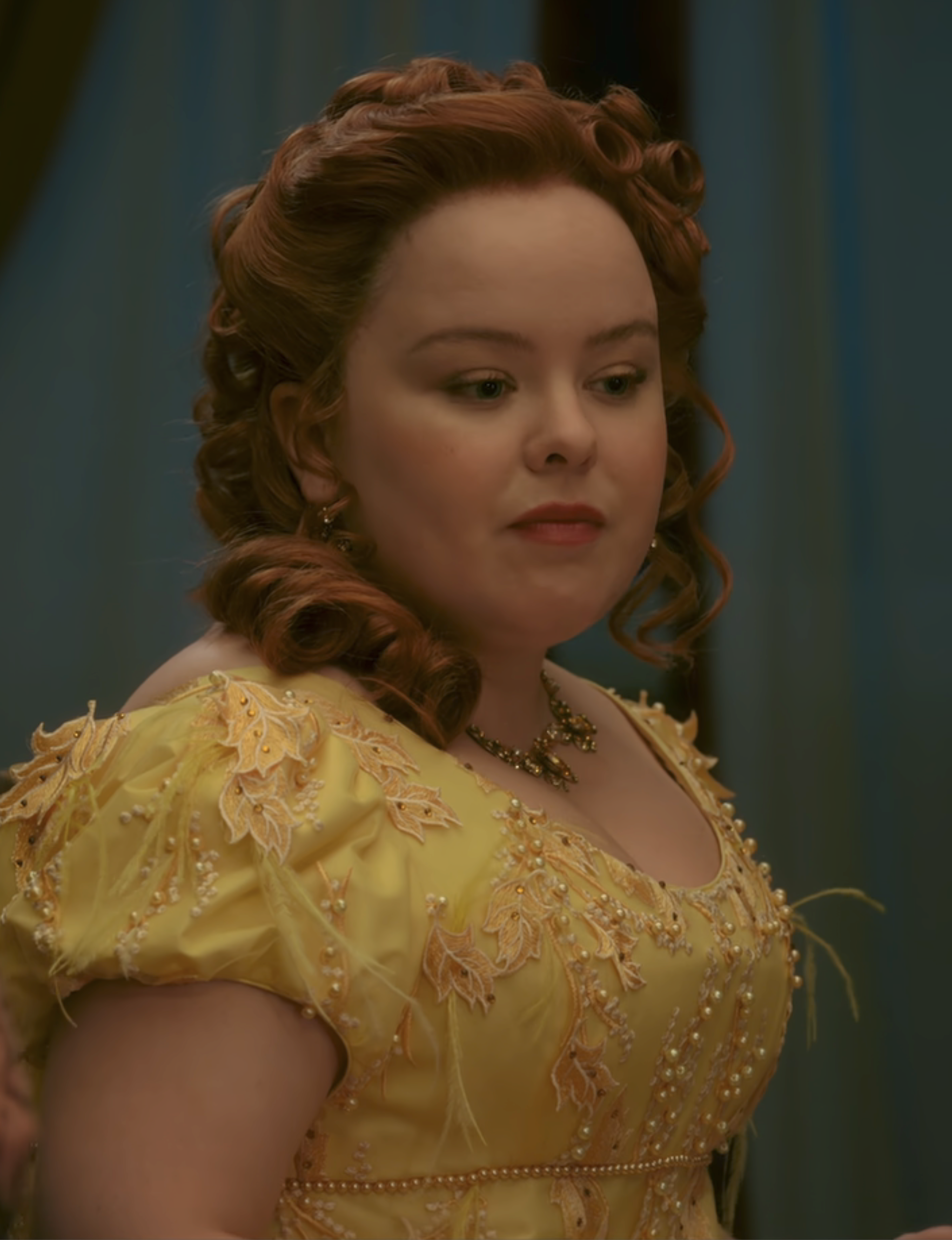 The youngest of the Featheringtons is Penelope. In season two she’s in her second year on the marriage mart, secretly in love with Colin Bridgerton and is best friends with Eloise Bridgerton. However now that Eloise is out in society, she poises a difficulties to Penelope’s Lady Whistledown operation especially since Eloise is obsessed with unmasking the gossip-writer.