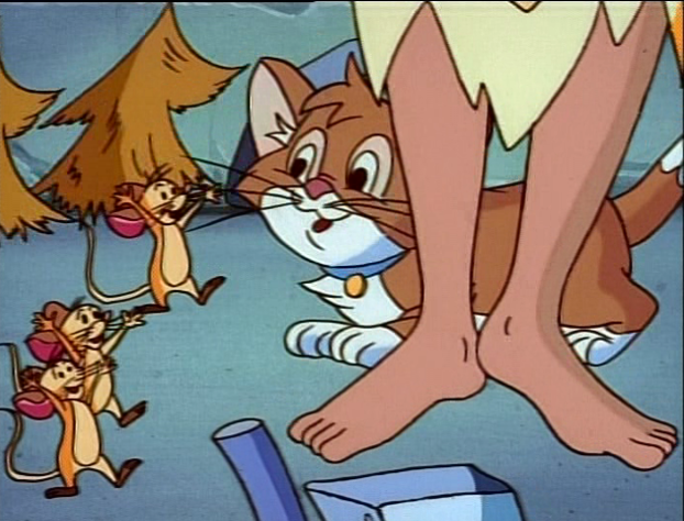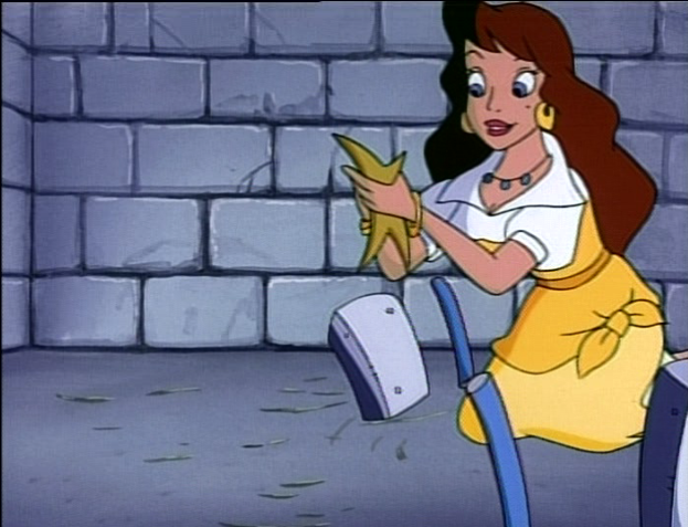 At roughly the 5:10 mark, Pierre and Frollo are on horses trying to find Melody and they repeat animation from earlier of Pierre and Frollo saying “no” to each other. Problem is Pierre is clearly on the ground and not on the horse during the repeating animation. Such pain!