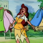 Aside from just the overall crappiness of the execution with its repetitions and still frames and bad lip sync, the animation on the whole of the Enchanted Tales version of The Hunchback of Notre Dame is down right insulting. It’s just down-right dumb looking and it make you dumber just looking at it. F-, 1/4 a star rating, 100 thumbs down.