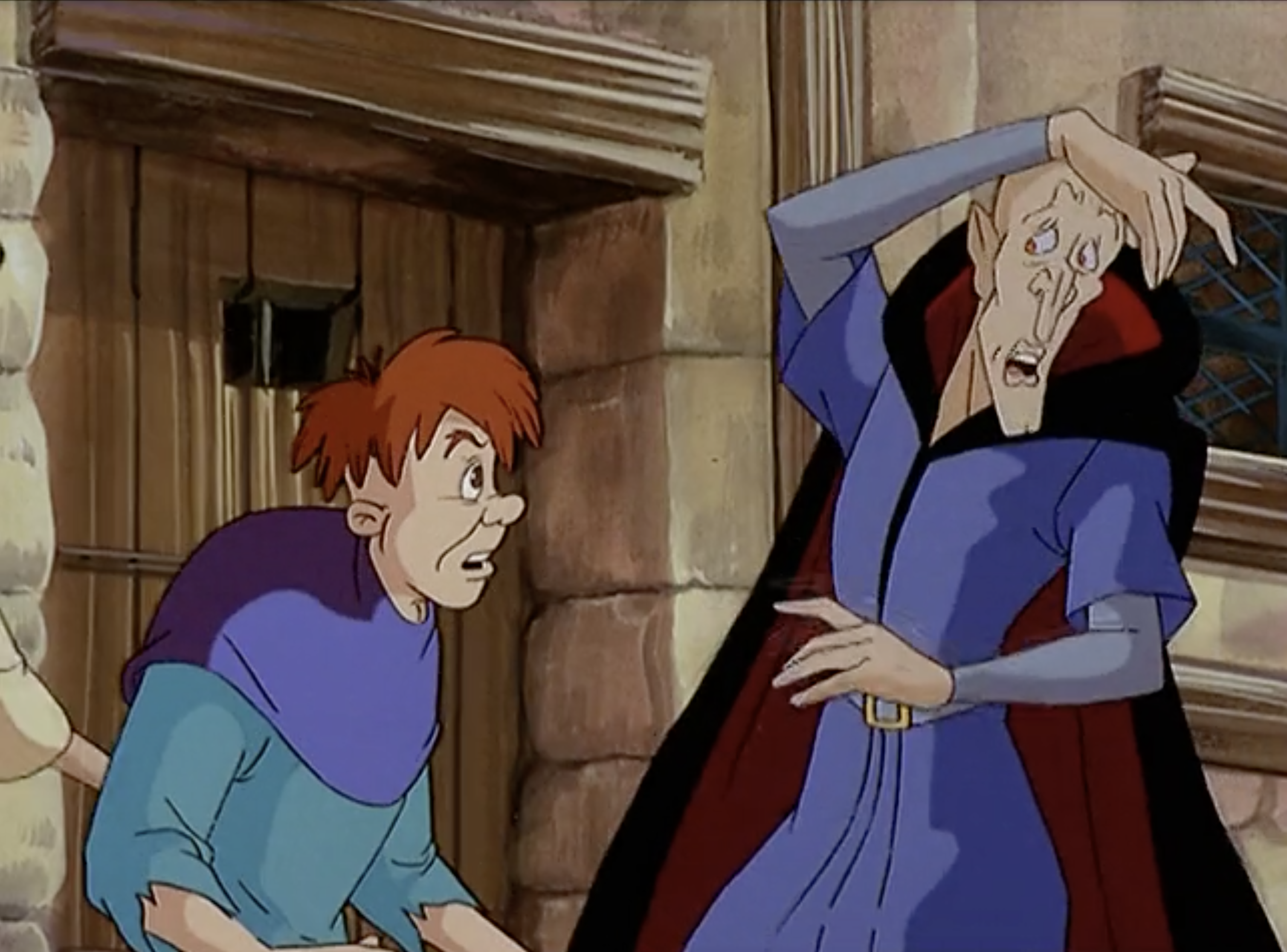 So the plot roughly goes that a warlord named Tisphaine is attacking villages. The King sends Dennis as his messenger. Why? Good Question but Dennis get captured. Meanwhile Quasimodo volunteers for the army and does his pal François. Quasimodo also introduces him by his birth name. He does seem cool with everyone calling him Quasimodo though so it’s all good which is good for the show since Quasimodo is on the title. Also the army uniforms look more like scout uniforms. Quasimodo gets his gymnastic badge and François is forever working on that poetry one.