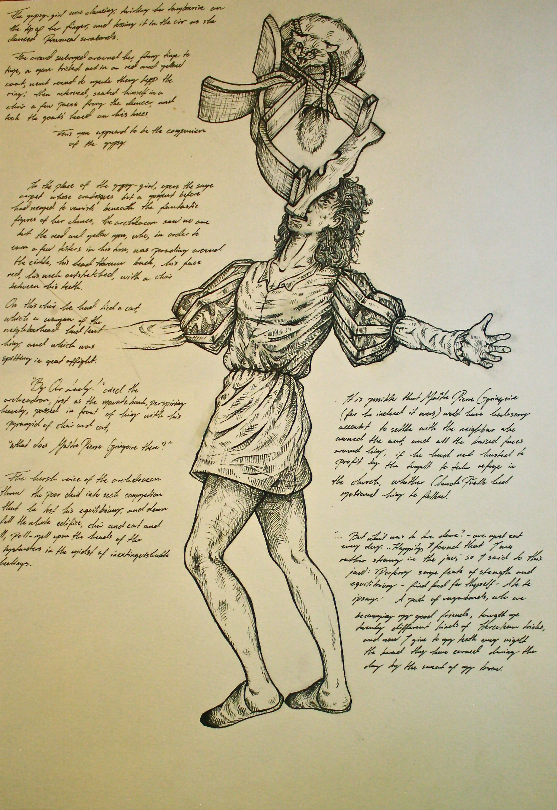 24Aug 2012 Fan Art Friday 8/24/12 by jess This is the second of two of three piece by Ida Christensen. It’s Gringoire balancing a chair in this mouth. One of the best parts form the book Gringoire by Ida Christensen