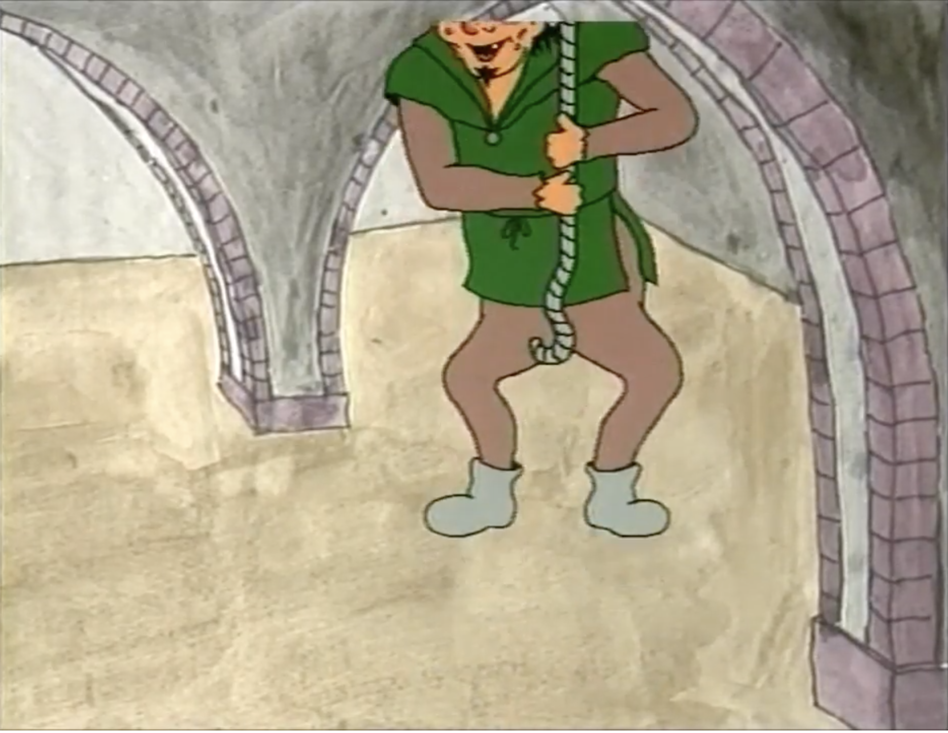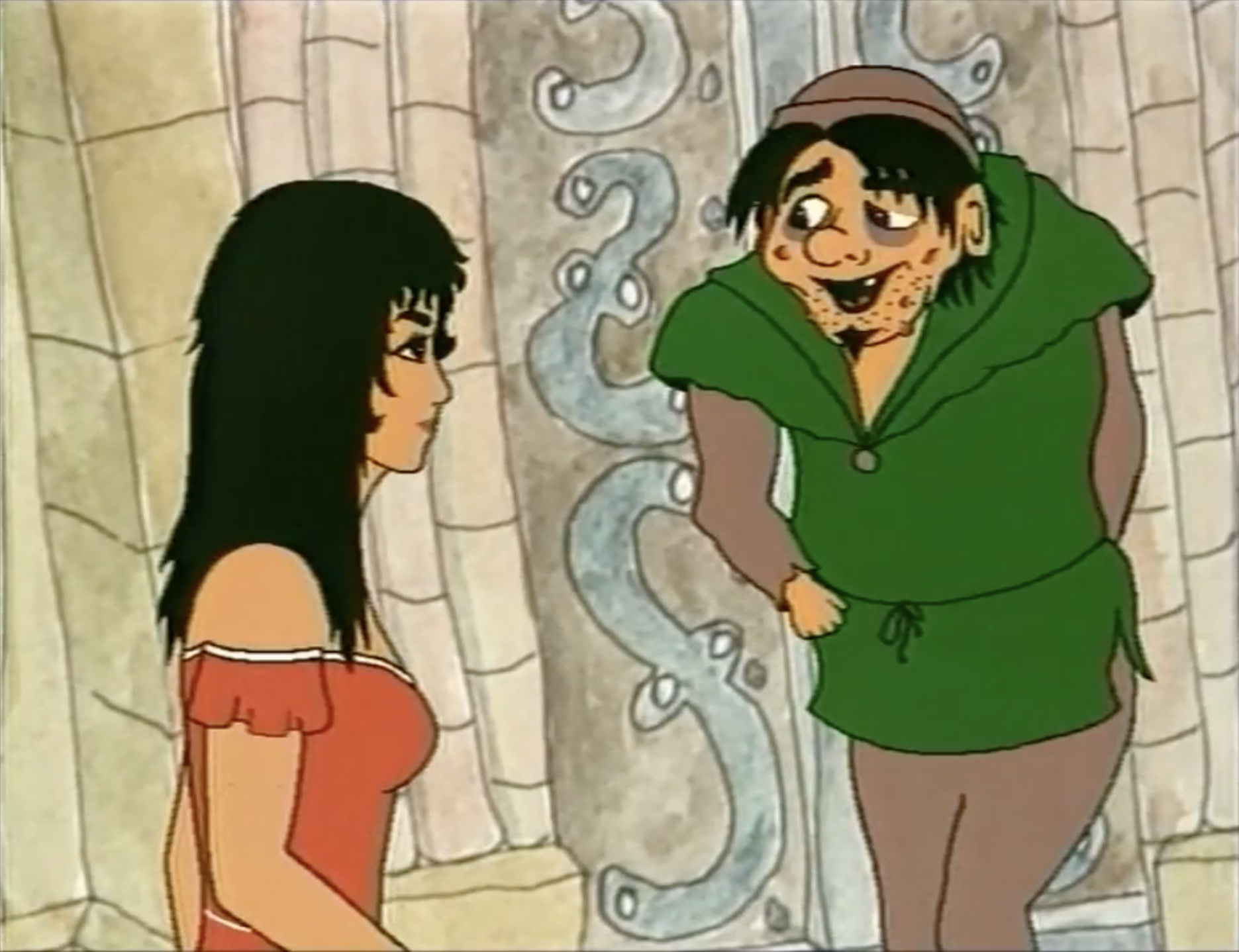 In the English dub you can hear a little bit of background music but if you go to the German version there is a lot more music. The music is not the worse, it’s vaguely generic medieval sounding with lutes, accordions, guitars etc. It doesn’t sound as grand or well-orchestrated as Disney’s Hunchback, though few scores do, but Dingo’s just sounds like one person playing one instrument at a time.